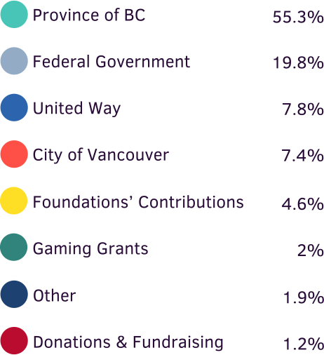 Most of our funding comes from all three levels of government, and we are grateful for their essential support. We also receive grants, donations, and fundraising contributions from community organizations and individual supporters. Together, these partners make it possible for us to continue delivering the meaningful programs and services our neighbourhoods rely on.